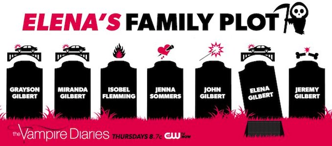 En tout cas, pour assurer la promo de The Vampire Diaries saison 4, CW a diffusé une image de la généalogie mortuaire de la famille Gilbert. De quoi faire le point sur l’ensemble de la famille après le décès de Jeremy dans l’épisode 14 de la saison 4. Ce n’est pas très réjouissant… beaucoup d’humour de la part de CW.